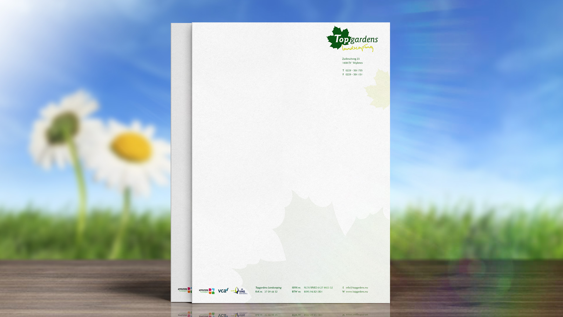 Voor Topgardens Landscaping heeft Acretia Media & Creatie het logo ontworpen en doorontwikkeld tot een herkenbare huisstijl.