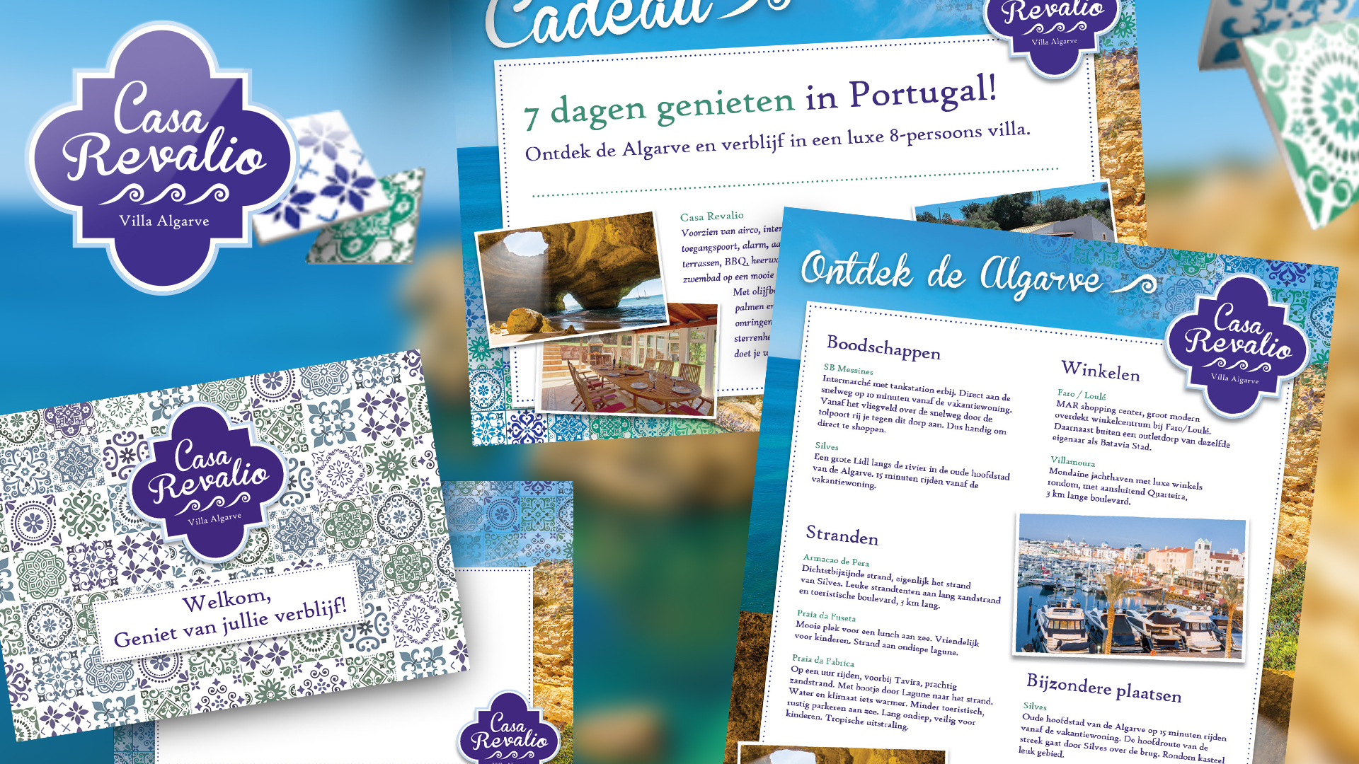 Retourtje Acretia-Algarve? De particuliere eigenaar van een vakantiewoning in Portugal wil deze verhuren. Via zijn eigen netwerk, maar wel professioneel. Acretia ontwikkelde hiervoor de flyer, brochure, welkomstkaartjes en een nieuwsbriefmodule. De website volgt nog. De huisstijl hebben we laten aansluiten op de Portugese cultuur en de stijl van de villa. Lekker exclusief. Celebre a boa vida!
